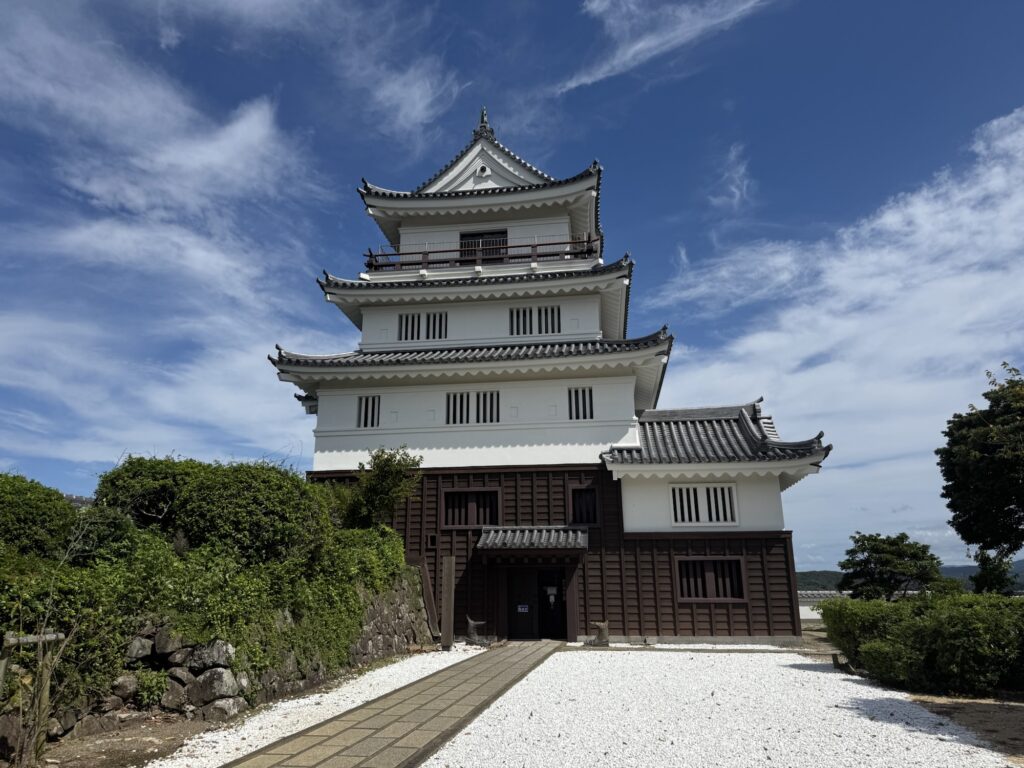 城跡としては、石垣の中に狭間がある点はユニーク。あとは「作っちゃった系」の天守がある。全体的に綺麗に整備されている。こういうのは別に作らなくてよかったのにと思うが、天守からの景観自体は美しいので、差し引きゼロである。
